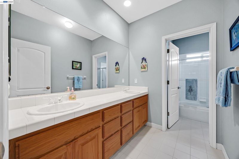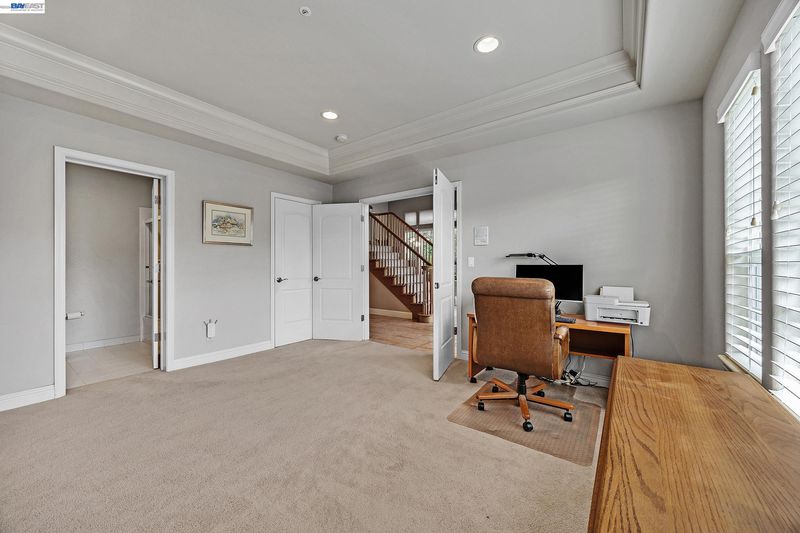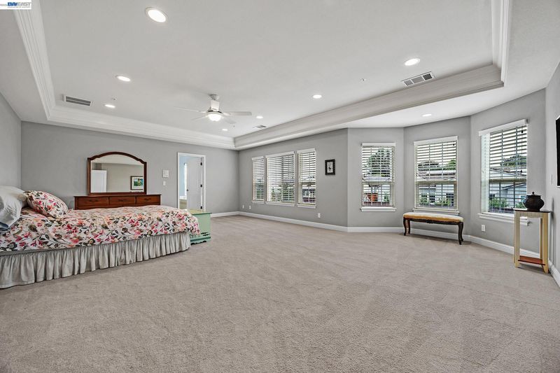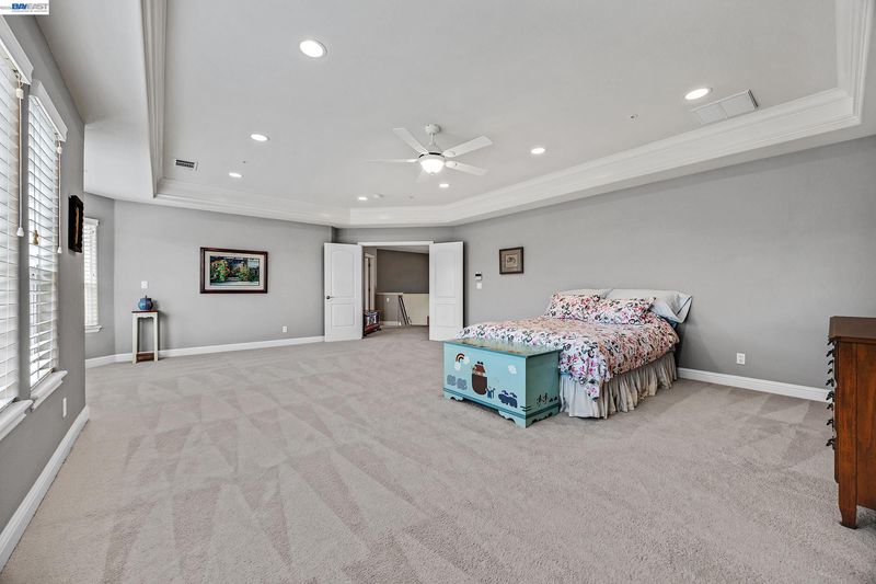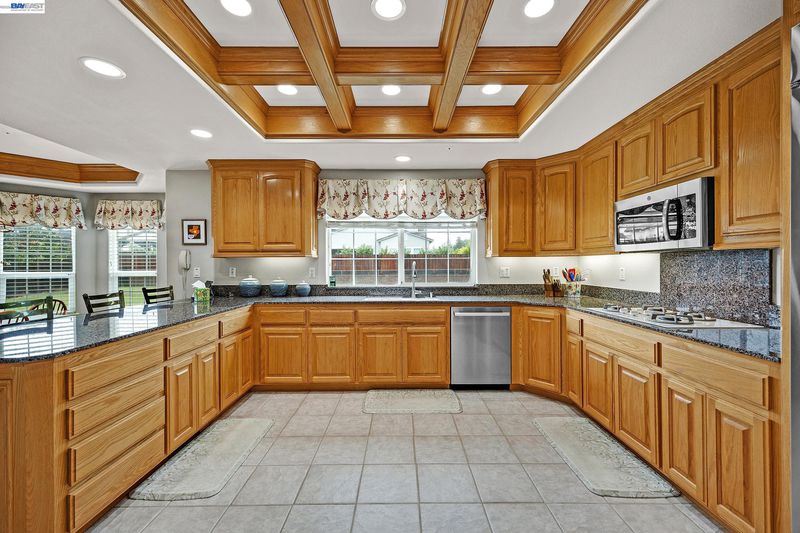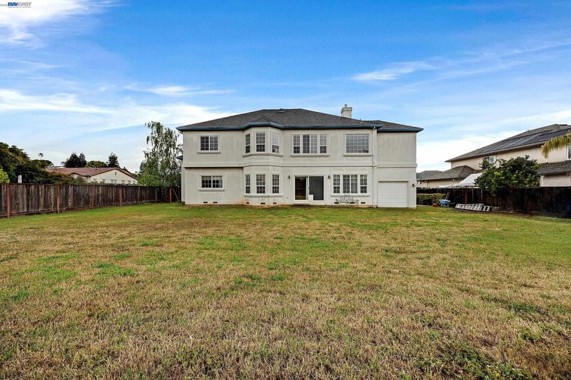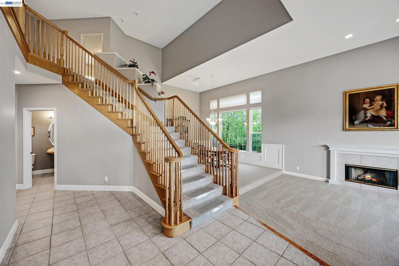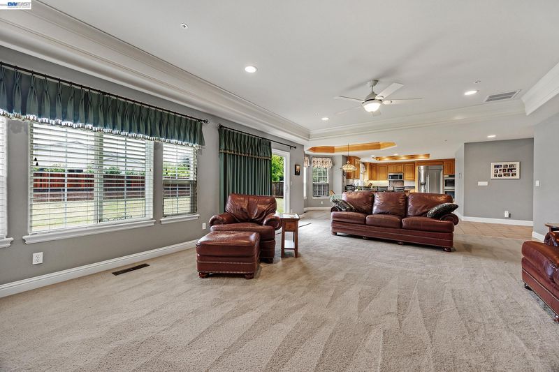 Bright and open floor plan with a downstairs bedroom or office with a full bath in this South Livermore home! The sunny entry leads to the living room and spacious formal dining room with custom wainscoting and soaring ceilings. The kitchen has expansive granite counters and upgraded appliances including stainless steel Bosch ovens and dishwasher, recently replaced stainless built-in refrigerator, walk-in pantry, and sunny breakfast nook. The family room is open to the kitchen and has a raised hearth gas fireplace and crown molding. The kitchen and family room are spacious and perfect for large gatherings. Upstairs are 4 spacious bedrooms including large master bedroom with sitting area, spacious walk-in closet, and bathroom with jetted tub. The possibilities are endless for the large back yard, perfect for a future pool, outdoor kitchen and more. Upgrades include new front door, crown molding, custom recessed ceiling in the kitchen, intercom, and central vac. The rear yard has side yard access and loads of