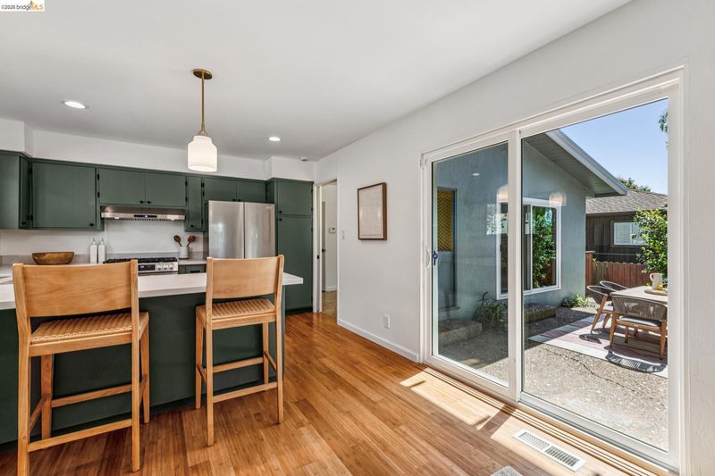 Discover a sanctuary of peace and modern sophistication in this meticulously remodeled El Cerrito gem. Held by the same family for decades and recently updated with permits, this 3BD/2BA Mid-Century Modern home seamlessly blends Japanese-inspired aesthetics with high-end contemporary finishes. A serene Zen garden welcomes you with a peaceful walkway, bridge, and plum trees. Inside, gleaming bamboo floors lead to an expansive living area with a stone hearth and a dining space overlooking a central courtyard — perfect for al fresco meals. The chef’s kitchen features new stainless appliances, designer lighting, and a bonus lounge for easy entertaining. The primary suite is a true retreat with shoji screens, views of a magnificent wisteria, and a premium en suite with a double vanity. Two additional light-filled bedrooms offer ample closet space and hardwood floors. The sunny backyard is an orchard oasis with Asian pear and apple trees. Located steps from Korematsu Middle School, Castro Park, and the El Cerrito Swim Center, you’re also just minutes from hiking at Canyon Trail Park and the Ohlone Greenway. With a rare 2-car garage and easy access to BART or the Transbay bus to SF, this home offers the perfect balance of tranquility and urban convenience. Experience a home that truly nourishes the soul.