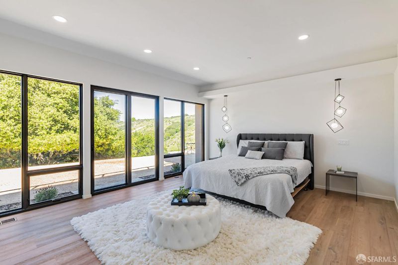 Featured on the 2024 Silicon Valley Modern Home Tour! Rare opportunity to live in Belmont's Plateau Skymont neighborhood on a quiet, picturesque street. This brand new contemporary construction boasts 5 bedroom suites and an additional half-bath in 4,000 SQFT of living space, plus two car garage. Designed for both everyday comfort and unforgettable entertaining, the gourmet chef's kitchen with high end appliances flows into the great room, which opens up into a generous size deck for additional entertainment and outdoor hosting. The downstairs family room doubles as an entertainment space featuring a kitchenette/bar, and a striking glass-walled walk-in wine room. Two bedrooms are upstairs and the rest are downstairs for additional privacy. The owners en suite features a large walk-in closet, and a spa like bathroom. The property enjoys a 29,097 SQFT lot, which opens to 260 acres of protected open space. Access the multi-use trail system for hiking/mountain biking directly from the backyard. The future home owner will enjoy beautiful views and sunsets and will be proud of this gem of a home.